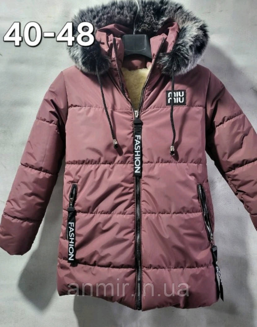 Куртка зимова підліткова з капюшоном на хутрі MIU MIU для дівчинки розмір 40-48, колір пудра