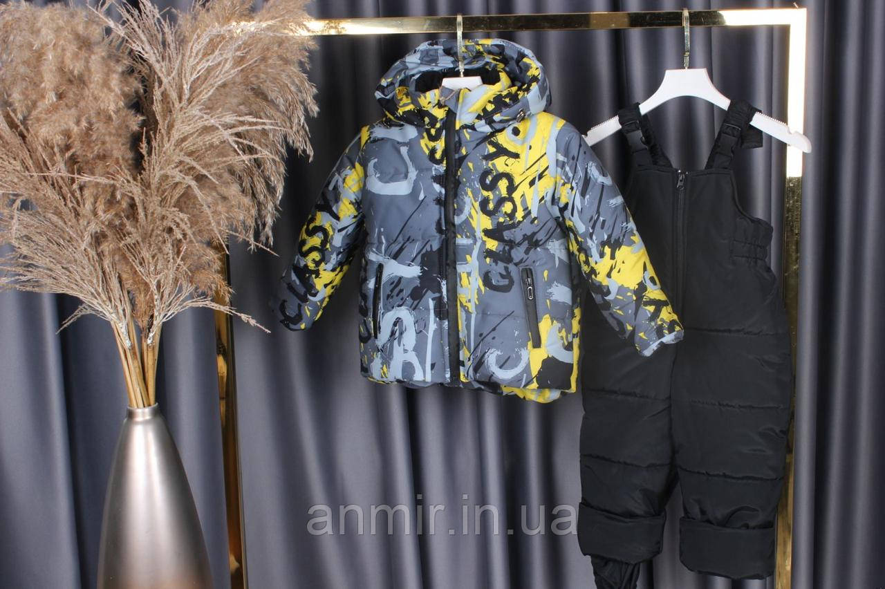 Комбінезон дитячий зимовий із курткою ПРИНТ для хлопчика 4-8 років, чорний із жовтим