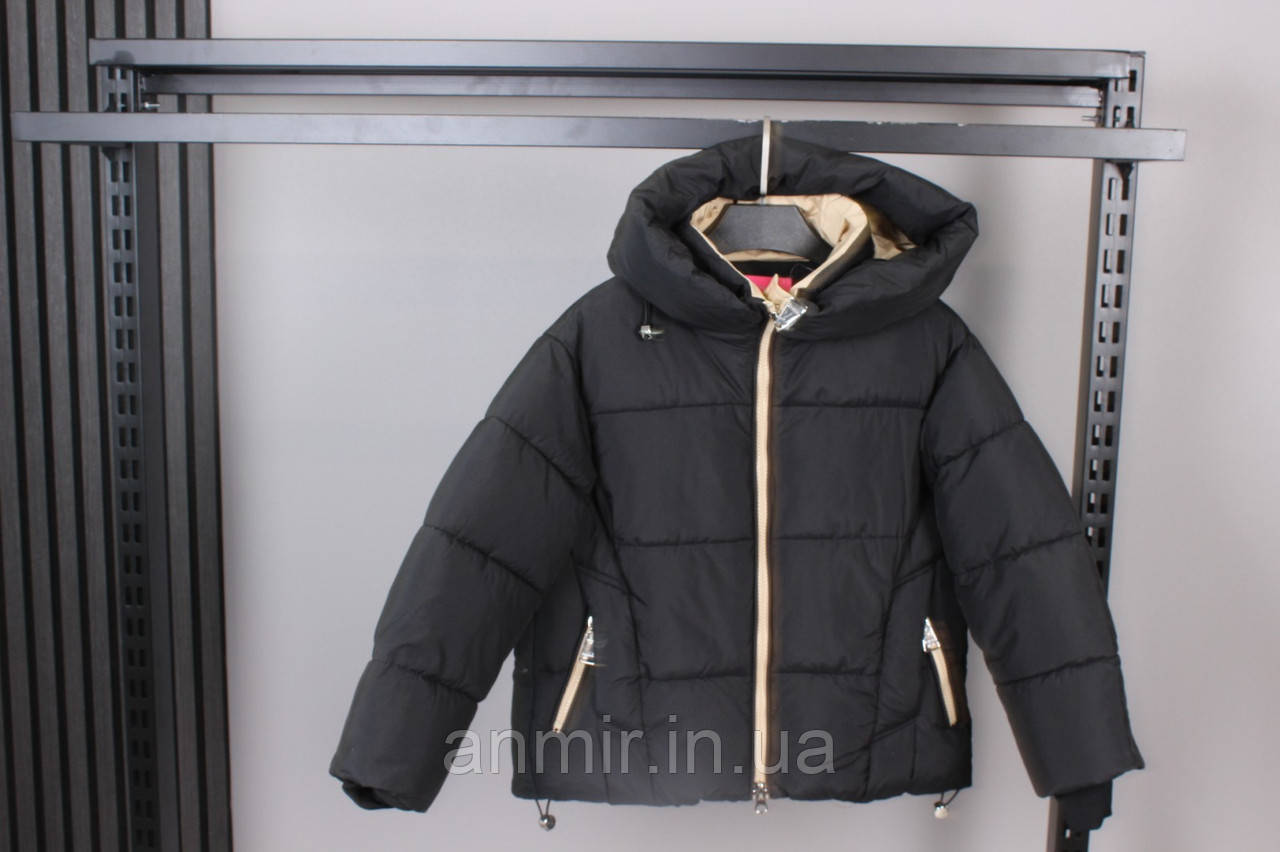 Куртка зимова пуффер дитяча з утяжками для дівчинки 6-10 років, колір чорний
