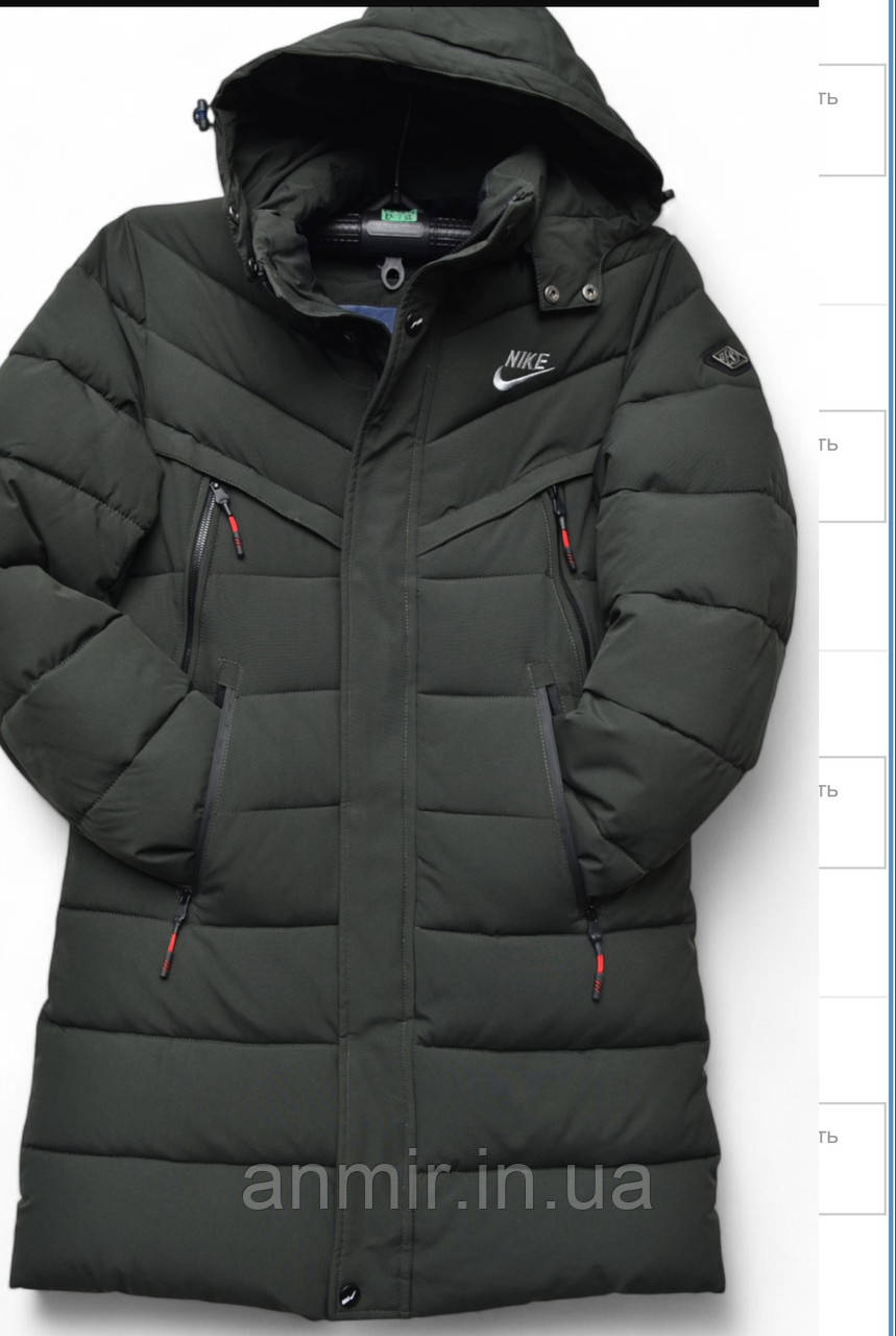Куртка чоловіча зимова довга пряма стьобана NIKE норма 48-56, колір хакі